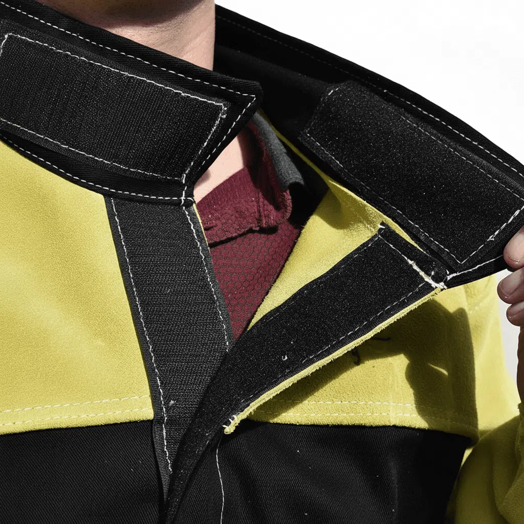 Descrição: O blusão de segurança Teknoluvas foi especialmente desenvolvido para proteção do tronco e membros superiores do usuário contra riscos térmicos (pequenas chamas, calor de contato, convectivo, radiante e metais fundidos) e contra agentes abrasivos e escoriantes provenientes de operações de soldagem e processos similares. Especificações Técnicas: Confeccionado em raspa amarela especial ignifugada, brim antichamas, costurado com linha de aramida e fechamento através de vl3kr0. Aplicações: Soldagem a gás, soldagem MIG, soldagem TIG, soldagem micro plasma, solda elétrica, oxiacetileno, corte de plasma, soldagem que exigem alta destreza e que necessitam de uma soldagem mais precisa, soldagem realizadas em processos confinados. Cuidados e conservação: Lavar à seco; Secar a sombra; Não passar a ferro a parte em raspa; Se passar a ferro a parte em brim, usar temperatura máxima de 150 °C; Não utilizar alvejante. ATENÇÃO: Pode ser aplicado silk com a logomarca da empresa. CONSULTE-NOS PARA MAIORES INFORMAÇÕES ATENÇÃO: EPI NÃO APROVADO PARA COMBATE A INCÊNDIO OU FOGO REPENTINO